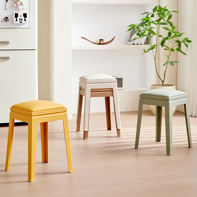Many cushioned plastic stools feature a stackable design, helping you save storage space and enhance organizational efficiency.